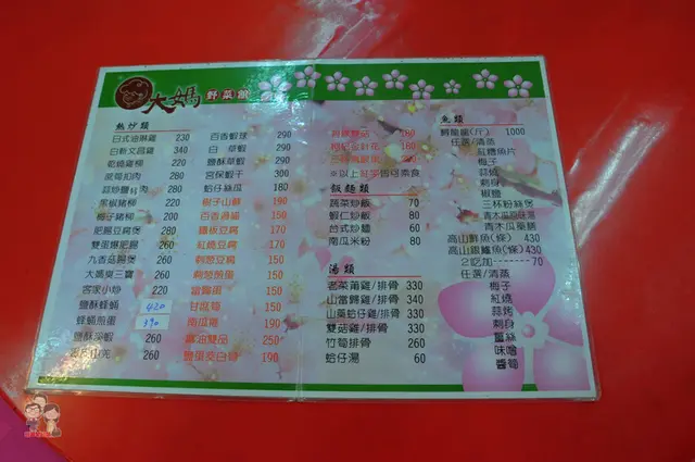 好不容易搶到了空位,趕緊來看看大媽的菜單,