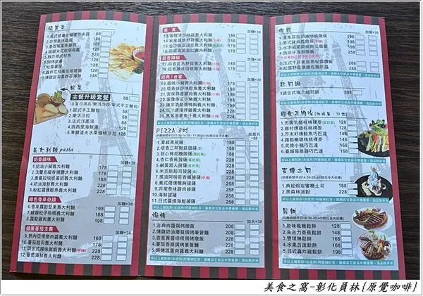 嗯嗯嗯,主餐的價位大約落在140~300元之間,可選擇升級套餐(須另外加價)或單點亦可,胃口較大的人也可以加大份量(義大利麵或燉飯加量一律酌收30元),另外還有手調飲品、炸物點心、披薩以及鬆餅可以選擇,因此原覺咖啡除了正餐以外,也是悠閒下午茶的好選擇 !!