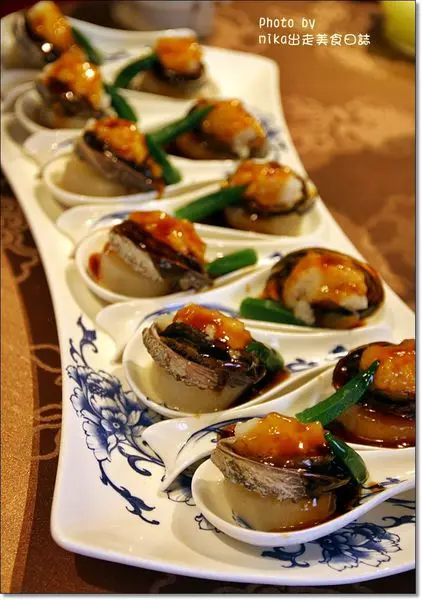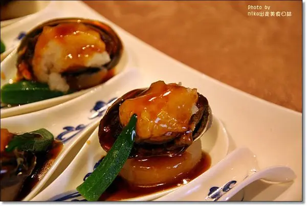 鮑魚直接用湯匙擺飾好,直接一人一個方便食用,除了有新鮮的鮑魚以外還有秋葵以及蘿蔔泥等搭配食用,吃起來比較解膩,至於醬汁調製的有點甜有著甘醇的醍餬味,鮑魚本身吃起來好鮮美肉質Q彈紮實,有海味但沒腥味呢,真的好奢侈的一道菜阿,一人獨享一顆鮑魚,太享受了阿!