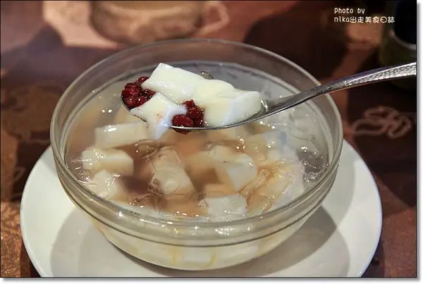 這杏仁豆腐口感非常的特別唷,來這不吃杏仁豆腐你真的會後悔,因為他們家的杏仁豆腐口感硬是跟別人不一樣,除了有杏仁香氣以外,還有加少許太白粉下去做調和,吃起來超Q的,是有口感的杏仁豆腐,滑嫩Q彈還有淡淡的杏仁香氣,精緻又美味。
