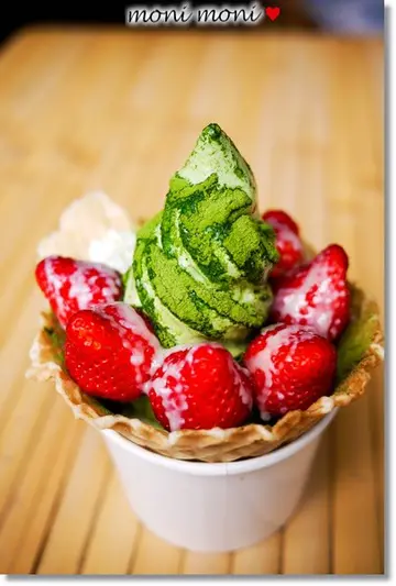 一到店就趕緊來選擇自己想吃的口味,不過人很多,所以要慢慢等位置,可以先點完餐再等位置囉!!才不會浪費太多時間~文山茶屋是原老店,門旁還寫上大大的歷史背景說明他們是純正宇治茶専門店・三星園上林三入本店は、純正宇治茶の販売。店鋪的空間真的很小,一進門看到滿滿的人,座位也蠻少的,不過裡面卻還是營造出茶屋的氛圍,蠻用心的。這次春天來吃趕上他們的草莓季,現在夏天也換了新鮮的芒果囉~詳細內容請看店家官網個人還是覺得草莓配抹茶是絕配呢~真幸運!!店內販賣許多讓人銷魂的解暑聖品-抹茶飲品、拿鐵、歐蕾等不同種口味的搭配,因應霜淇淋熱潮店家也推出將軍的淚、將軍的榮耀等兩款霜淇淋冰品還有宇治金時冰。 (原本有加入紅豆,這款我們是選擇不加的喔!)這款為店內最受歡迎的霜淇淋,採用100%純正的日本道地抹茶和鮮奶製作而成,旁邊以純糯米製成的白玉麻糬,上面在傻上大片的抹茶粉,整款冰品看了就大快人心。儘管他們家的霜淇淋比市面上的來的貴一些,但他們家的人氣卻不會因此而削減,非常濃郁的抹茶味,每一口都是道地抹茶帶來的感動,略帶有點苦澀的茶味才是最道地的。苦得相當滑順的抹茶,在尾韻端會帶出甜味,苦中帶甜的滋味才是令人最受不了的關鍵。一旁的白玉麻糬非常的Q彈有力,比起珍珠來得扎實許多。因為沒有加入紅豆都換成白玉因此白玉的份量也相當的多又甜,超適合搭配著抹茶冰一起享用。現在販賣的抹茶冰品很少會在撒上抹茶粉,三星園為了提升口感層次,在上方在撒上茶粉,讓人吃到冰冰的抹茶冰還能吃到味道較重的抹茶粉滋味~剛好moni是之前來的,當時還是草莓盛產季,所以有推出這款新商品,抹茶和草莓的搭配真的是絕佳,自己超愛的!!可愛的抹茶冰旁邊還有七顆紅通通的草莓環繞著好像在跳舞般愉悅~他們家的草莓一點都不馬虎,每一顆的大小都差不多,且甜甜的草莓香味非常重,可以吃得出是很新鮮的草莓。上面在淋上煉乳,草莓煉乳的滋味更是甜膩阿~~草莓的水果甜味,搭配抹茶本身略帶有點苦的茶香味,中合起來的滋味,一點都沒有衝突感,反而相當的順口阿~旁邊還有一小塊脆餅亦可搭配著吃。他們家的杯桶屬於高一些的,比起酷聖石的杯裝來的小一點,霜淇淋架高的樣子讓人難掩他光芒般的口感。下方的餅乾也烤得非常的脆,快吃完時可以咬碎沾著一起吃喔~這間人氣紅店,之前看到許多網友狂推,所以就很想親自體驗一下,果真不失所望,抹茶的濃郁味道至今仍相當懷念,有機會還想前往另外的分店品嘗。三星園 道地的抹茶純正風味,來自悠久相傳的歷史,每一口的綿密滋味,都是老闆用心的結果。今年又開了間上林茶屋,抹茶的魅力依舊不減阿~三星園能在高雄以較高的單品價位存活也不是沒道理的。讓我打完文章後又想去吃它的其他分店了拉~…查看更多