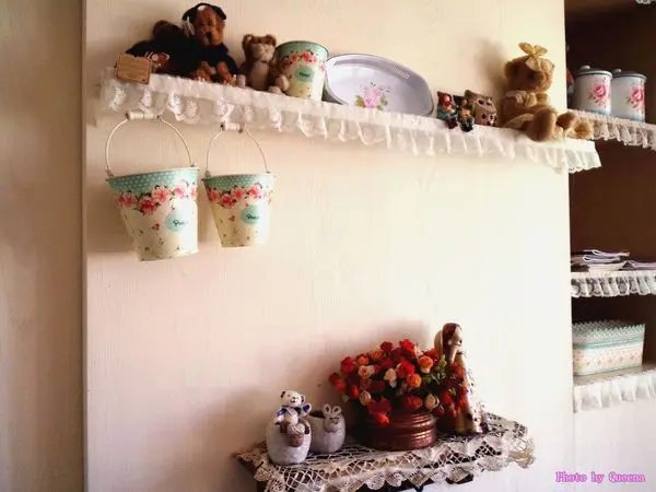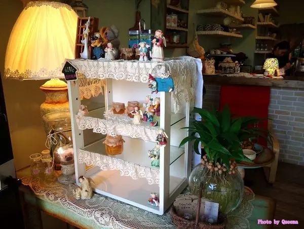 有許多精緻的小雜貨以及手作藝術品和大量蕾絲打造成浪漫鄉村風