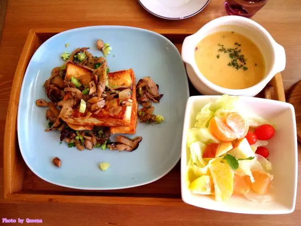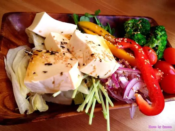 生菜與豆腐帶著微微的芥茉香卻不嗆辣,十分清爽開胃與一般油膩的沙拉醬截然不同