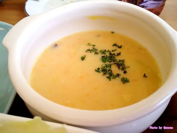 每日提供不同新鮮現做的濃湯,今天喝的應該是南瓜蔬菜湯,所有材料以熬煮到看不見