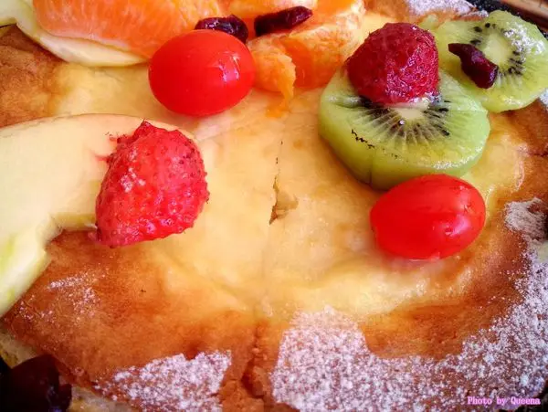 先把上頭的水果取下方便切鬆餅,這裡的鬆餅非常紮實,跟既有鬆餅印象完全不同