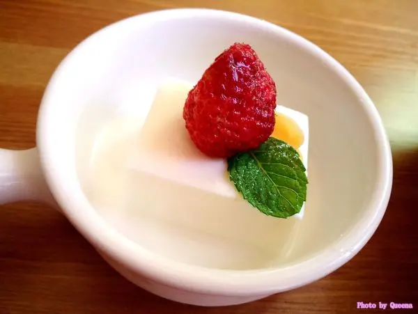 原本以為是奶酪,吃了一口發現竟然是杏仁豆腐,這是道很兩極化的甜點