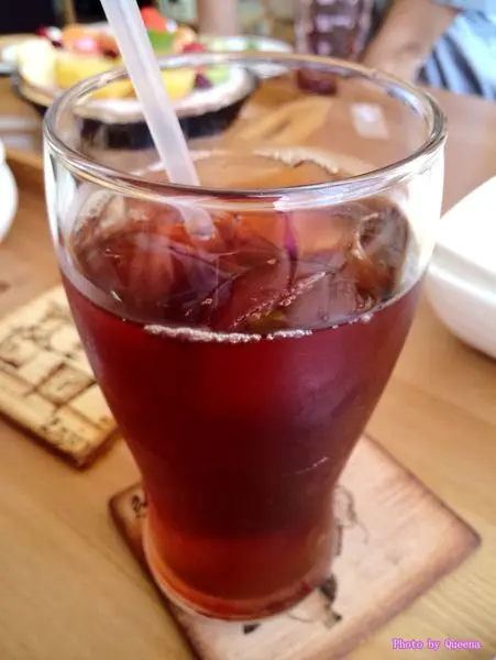 附餐飲料有紅茶和咖啡可以選擇,都可以做冷熱飲,甜度不高還不錯