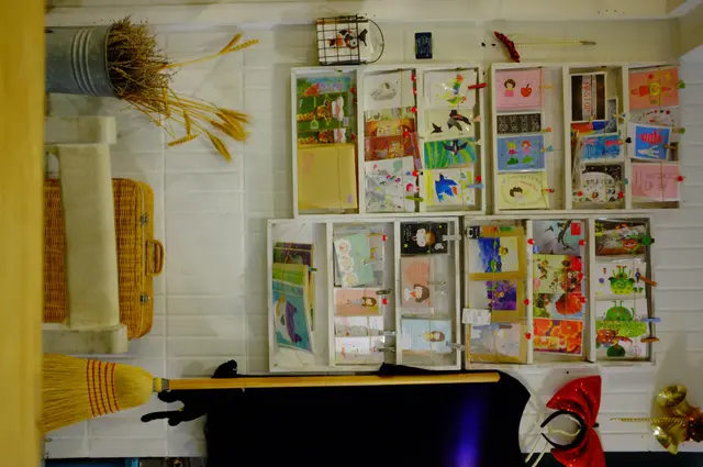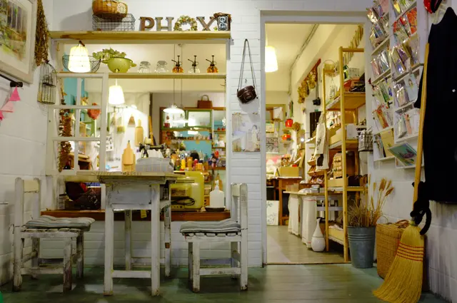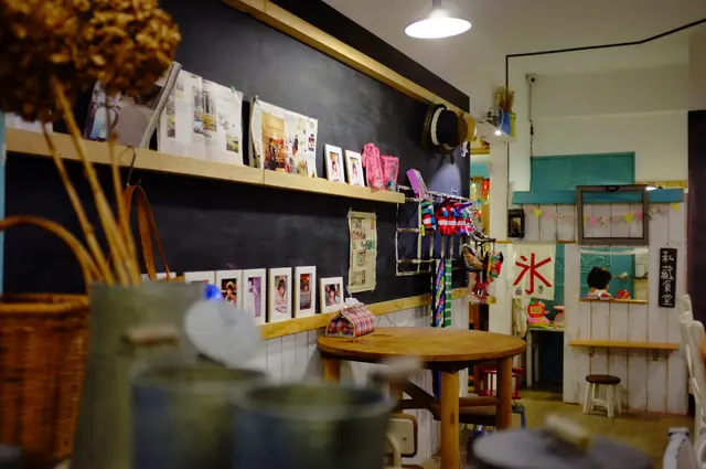 整間店充滿日雜手作風格的氣息,空間區隔出用餐區和商品展示區,牆上也有很多有意思的明信片和展示品。