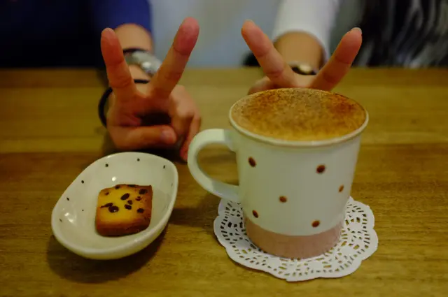 黑糖拿鐵 - 附了一片巧克力手作餅乾,並不會烤的太乾,適當的在餅乾上塗了些巧克力入口後在口中化開和奶香結合是完美的搭配。