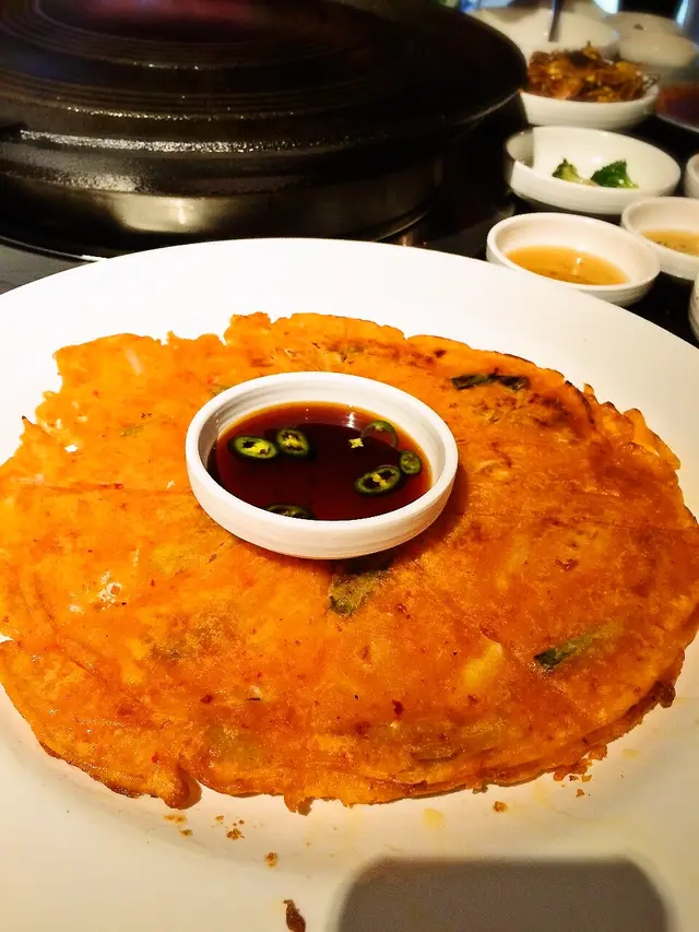 因為剛開幕的關係,還有送可樂或雪碧,以及一份大醬湯,跟蒸蛋,口味都還不錯!泡菜煎餅則表現普通~