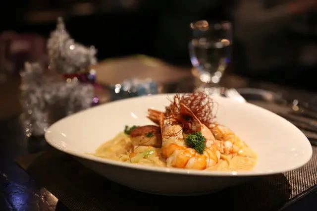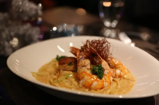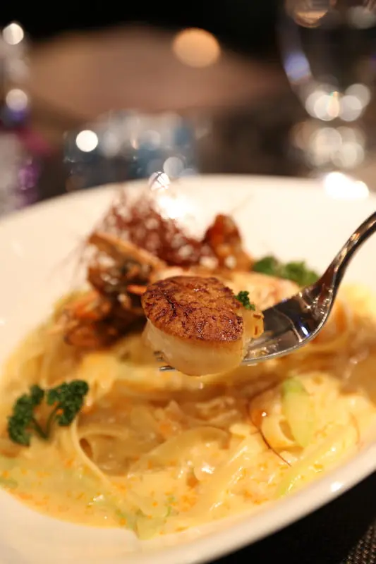 明太子奶油生食干貝 鮮蝦寬麵