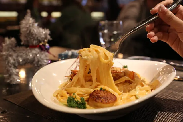 寬麵正反面裹的不只是明太子和奶油,還有起司呀!增添奶油香氣&濃稠度