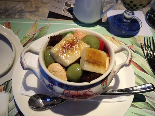 據店員說法是裡頭有10來種配料,跟樓下冰淇淋幾乎是用同種配料,肉眼觀察有起士蛋糕、焦糖香蕉、巧克力海綿蛋糕、綠茶圓(?)、蓮子、奇異果、哈密瓜、蛋白餅,相當豐富。