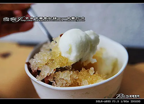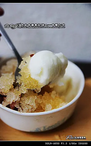 很簡單的酸梅冰+蜜花豆與手工冰淇淋組合而成,首先是酸度很夠的酸梅冰,酸甜之中帶著鹹味.讓味蕾可以一口接著一口不會膩的品嚐著,店家香Q的蜜花豆是經過紅糖熬煮8個小時以上,所以花豆的甜味雖然甜但是不會膩加上手工冰淇淋的綿密與細緻組合這最簡單的卻又好吃的豐仁冰,讓大食客又回到小時候的古早味。整體度與美味度:★★★☆☆