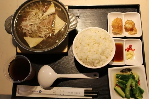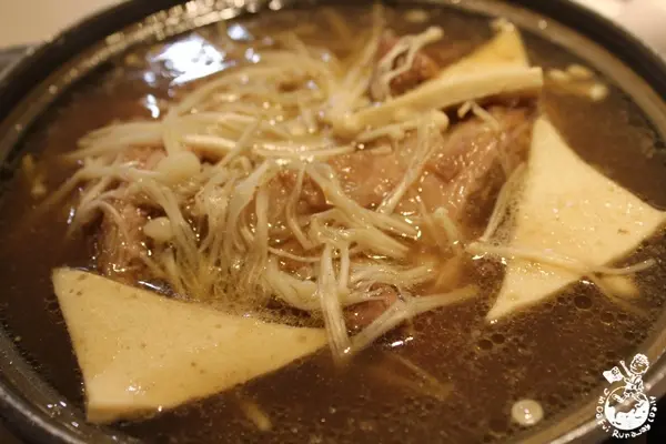 肉骨茶內含排骨肉、豆腐、金針骨等等