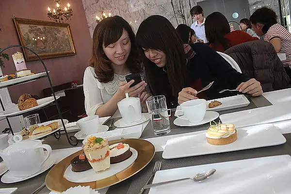 後來,捏捏他們到了後,我們就先開始選等等要什麼蛋糕,想等小儫他門來在一起點餐,因為這中間店員來問了2次是否要點餐了,有點不好意思就先點了,但是我有交代他們是否可以等我們的客人來點餐後在一起出,他們也答應我!結果小儫他們還沒來就先送來蛋糕櫃的現成蛋糕,我就又去跟他們說一次可以等我們的客人點完餐在“一起”送餐來嗎!?店員還說“蛤?”後來我跟他解釋了一番並且告訴他我覺得我的客人還沒點好餐我們的東西就送來我認為有點不禮貌,所以麻煩他們可以等他們點好餐在一起送,店員還是答應我說好,後來還是送來了茶- -哈哈哈哈哈我不死心又去了一次,小儫他們來了正在點餐,他們就把我們點的三層下午茶送來了,捏捏就狂笑,他知道我已經快按耐不住了!