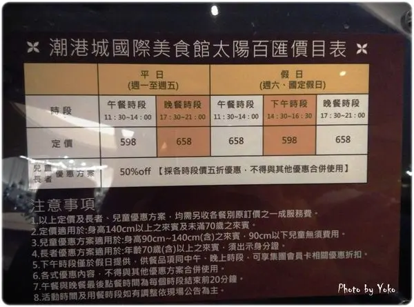 這次剛好參加某個活動中了一張潮港城太陽百匯的餐券,
