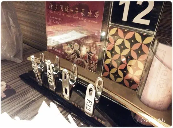 一樣的每桌桌上都有桌號夾,使用在現蒸現煮菜餚處。