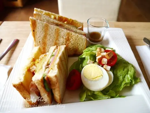 烤的稍微焦脆的土司夾著豐富的內餡,搭配清爽的沙拉,是女孩子喜歡的輕食。
