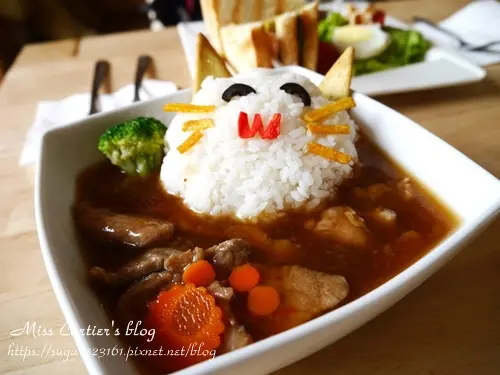 有搭配小巧的濃湯、跟喵咪飯。不過飯粒有點硬、味道也不特別,