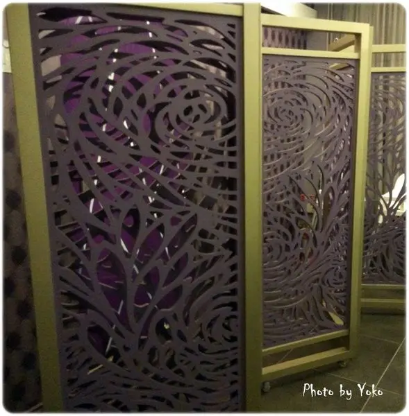 一旁的紫色屏風也是特別請人木製雕刻,可用來裝飾或是在此當作隔間使用。