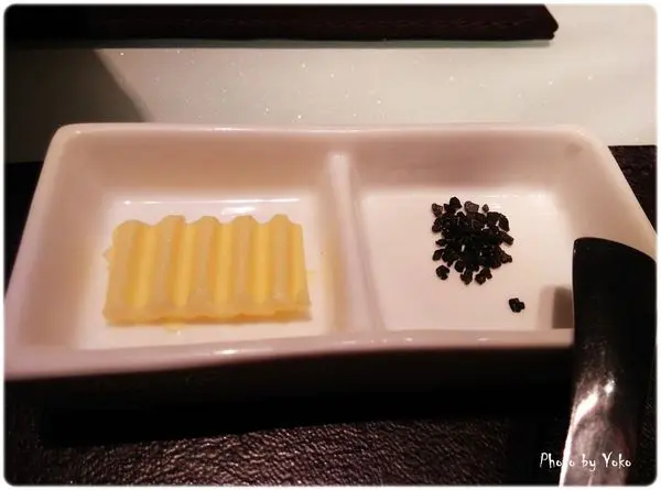 搭配的是阿根廷原味奶油 (左)、特選天然風味鹽(右)。
