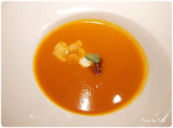從外觀上看起來就像是南瓜濃湯,但其實是紅蘿蔔濃湯。