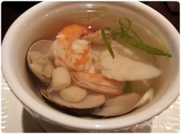 這道湯品是以杯裝乘,可直接扣杯耳飲用很方便!