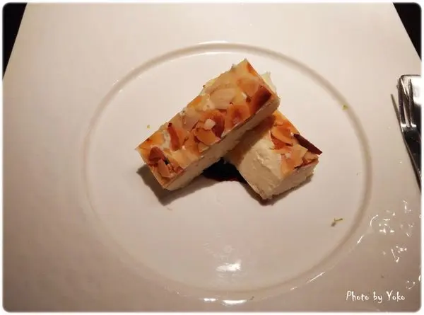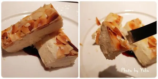 灑上的是脆口的杏仁片,與軟嫩的糕體呈現強烈的對比,