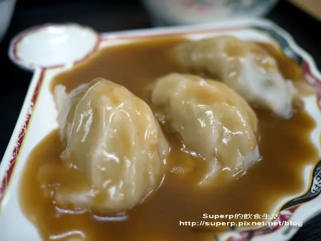 這裡的肉圓是蒸過的,所以皮很軟,而裡面有蝦仁和肉燥。蝦仁使用的是火燒蝦,感覺很新鮮,口感不像是一般的冷凍蝦仁那麼的軟爛無味,跟肉燥吃起來很特別。醬汁甜中帶鹹,跟肉圓很搭,推。