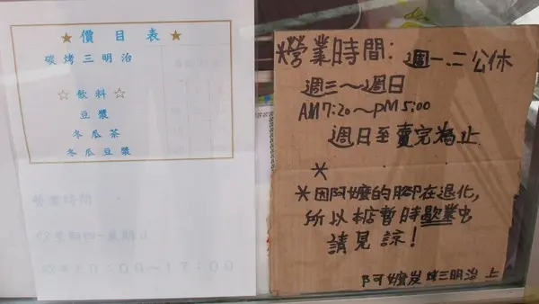 (外店)營業時間:週三~日AM7:20~AM17:00 (每週一、二公休)