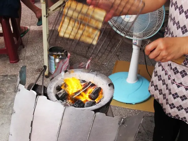 吐司,咀嚼起來,有炭火的焦香。增添了一股熱烤風味!