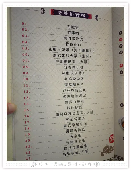 根據料理受歡迎的程度,店家整理出"老饕排行榜"供顧客參考。