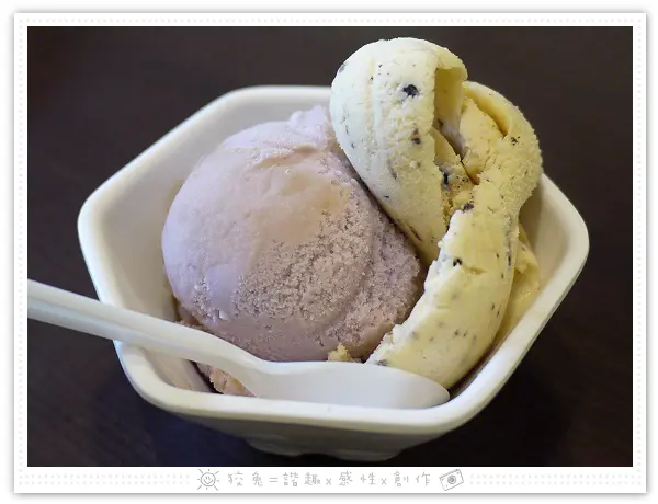 一旁冷凍櫃內有四種口味的冰淇淋,開放給顧客無限挖取。