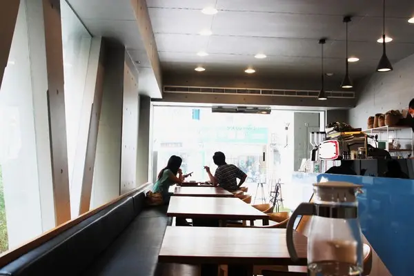 店內以及外觀裝潢皆採用較具現代感的 清水模樣式,