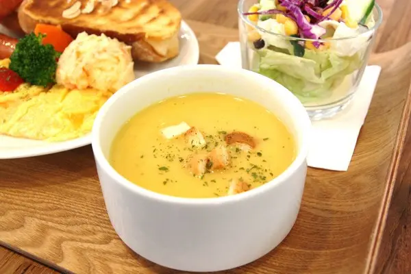 店家偷偷透露,使用紅蘿蔔&洋菇&其他蔬菜,加上奶油炒香,然後打碎調製而成