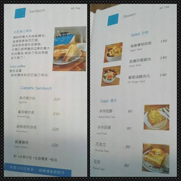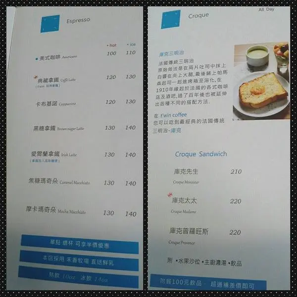 專賣:t'win coffee 咖啡吧 精品咖啡、早午餐、午茶甜點、三明治