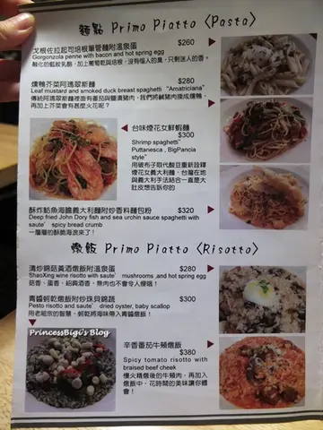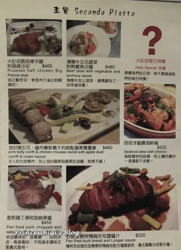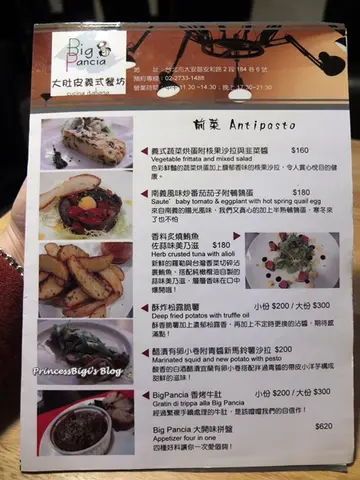 2013/3/13 (三)今日是老公生日,現在的我呢~自從結婚後就無比的節儉,只有準備小小的生日禮物,其實老公欠一個文青包,但一直找不到喜歡的,剛好省起來,嘻!其實生日或其他重要日子有跟老公說,沒有特別需要的東西就不用買(我一直在努力克制慾望....),錢省起來比較實在,必竟還有那麼長的路要走,現在多花只是苦了老年的自己,不過一定要出去吃頓飯慶祝。吃飯通常他都沒什麼意見,隨我決定,看了下口袋名單,則選擇離家不遠的Big Pancia大肚皮義式餐廳,白痴的我們還多繞了點路,今天天氣也很詭異,好端端的天氣突然下起雨來,而且風超大人整個差點被被吹走,安和路上盡是落葉滿地,也太可怕了!!終於看到Big Pancia大肚皮義式餐坊候位區~有超多可愛的小擺飾進去後天花板有一個超大八爪燈,超顯地很難不去注意它耶~沒想到平日沒什麼人耶~開心!空間不大也沒有過度的裝潢,反而是樸淨的典雅讓人有隨性與放鬆的感覺簡約時尚裝潢與鵝黃的柔美燈光挺令人感覺溫馨呢!很多小地方都可以看到老闆的用心與巧思我們座位正後方有個很有特色的書櫃,這裡也收藏了一些紅酒、義大利麵只是這書櫃的東西都不能動喲~連天花板上也收藏了一些紅酒老公說外套與包包要掛哪?突然想到「狗屁股」對!就是這個,白色的牆上裝設了一排這樣的「狗屁股」卡哇伊!店內菜單,餐點總共幾類:前菜和沙拉、義大利麵、燉飯、主菜,主要分成開胃菜、燉飯、甜點、麵、主餐,另外他們也有提供加價套餐升級:+NT$100有: 每日好湯+NT$70飲料,如果飲料要選超過NT$70的就補差額《飲料》《甜點》《主餐》《義大利麵》《燉飯》《前菜》Daily Special不會寫在菜單上,要注意店內黑板喲!開水清炒錦菇黃酒燉飯附溫泉蛋 $280其實我是為了它們的燉飯而來,在網上看到很多人超推他們家燉飯,想來好久了,終於被老公識破,因為我一直在講曾在長灘島吃的西班牙燉飯,始終令人難以忘懷,來嚐嚐義大利燉飯看看,是否也一樣好吃? (突然想到去義大利時並沒吃到燉飯??)燉飯使用的米則是義大利進口的 Carnaroli 米,他們通常會保留米心的口感,所以口感會偏硬,服務人員會特別提醒,怕客人吃不習慣。端上來時聞到多種菇類散發出的鮮甜香,好~好~吃,但飯量其實我覺得有點少說。西班牙臘腸海鮮鍋附麵包 $520由於老公不大愛吃義大利麵,所以點這道感覺不是常吃到的餐。海鮮料有蝦子、午魚、肉梭魚、大文蛤,原來臘腸只是一個陪襯的角色。蝦蝦大約有三~四隻,有點出乎我意料,原本以為有二隻就很偷笑了圓滾滾的干貝還附上四片麵包,可沾著湯品來享用或沾料沾這個醬超好吃西班牙臘腸海鮮鍋這道魚的味道比較重,所以要三思。焦糖布丁 $80 在物價高的敦南商圈,大肚皮義式餐坊的價位很有競爭力,料理水準也很棒,而且定期推出自己的新菜單,來這裡絕對令人大快朵頤的私房的義大利料理,還有許多誘人的餐點,有機會一定會再二訪。 最後祝老公生日快樂,希望我的小...小....小生日禮物你會喜歡,哇哈哈!!!!!! ┏┓┏┓。・゚゚・。。゚♡┃┗┛ appy♡┃┏┓┃ birth✿┗┛┗┛ day*゚✾。.。.。.。♡…查看更多