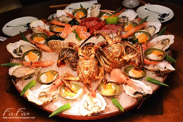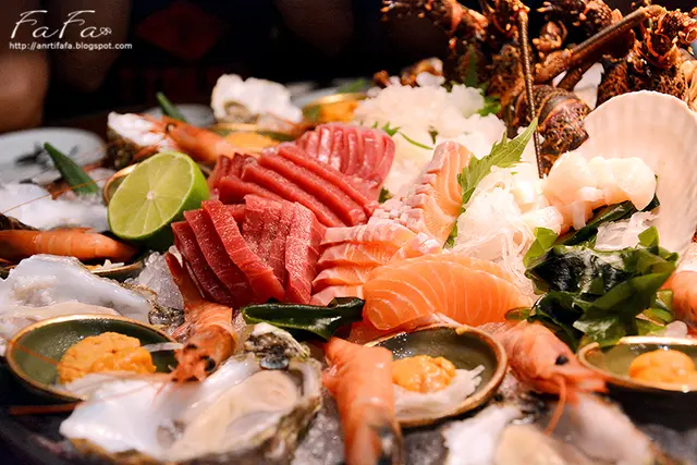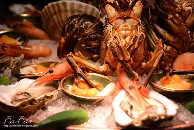 龍蝦、牡丹蝦、生蠔、干貝、鮭魚片、鮪魚片、旗魚片、秋葵