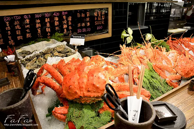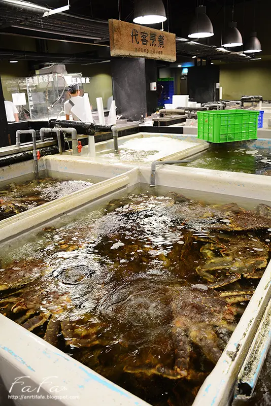 被快意鮮味吧的海鮮檯子所吸引,近距離觀賞超巨大鱈場蟹。