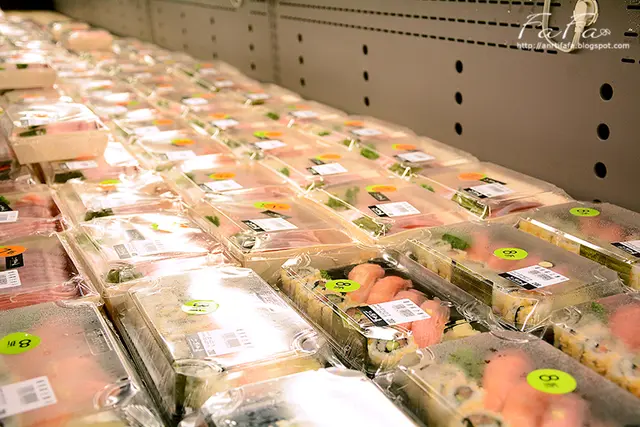 超市區商品都有貼上折扣標籤,越接近打烊時間折扣越多,貼紙會不斷覆蓋前者很逗趣,