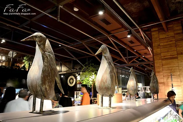 冷藏酒櫃有三隻鐵製企鵝,特別的有點像在上頭滑冰,猛然一看內心覺得很涼爽。