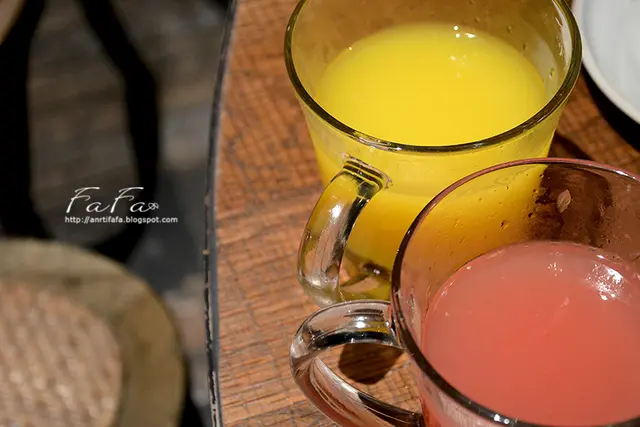 柳橙汁與葡萄柚汁分別為NT$120 雖然貴,微酸但是頗好喝。