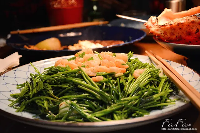 蝦仁炒水蓮 蝦仁給得挺慷慨,不過水蓮不夠爽脆且偏油。