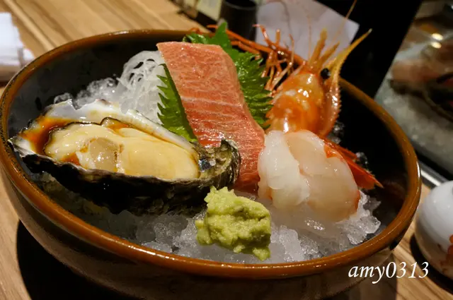 套餐裡的生魚片:生蠔、牡丹蝦和TORO。品質都很好,只是溫度略冰了點。