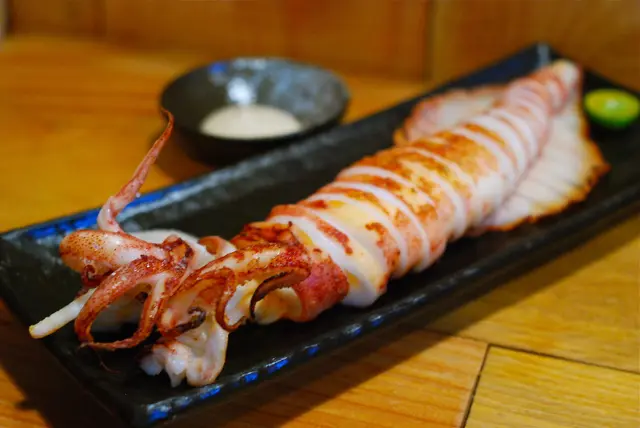 超大的一整隻中卷,香烤後切段放在我們面前