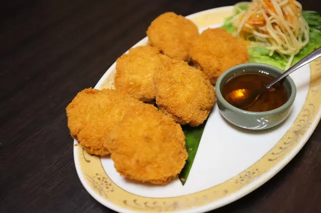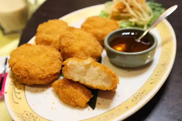 金錢蝦餅 $360/6片 這金錢蝦餅也是厚的嚇人,食量不大的人千萬別輕易嚐試不然後面的菜肯定吃不完。但個人較為喜歡月亮蝦餅的口感和清爽滋味,只能擇一會推薦月亮蝦餅。