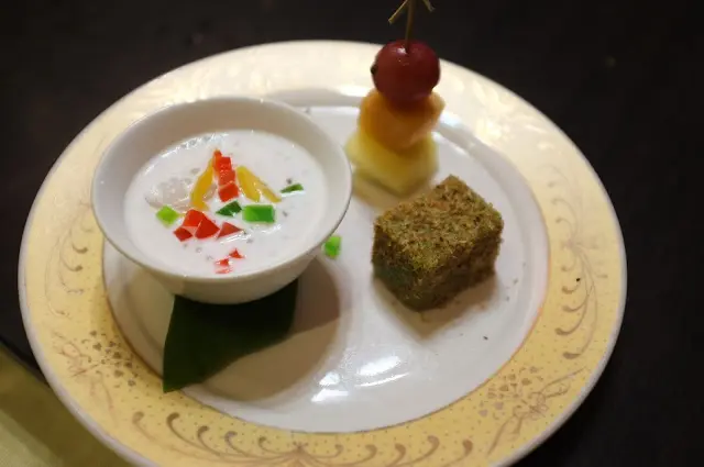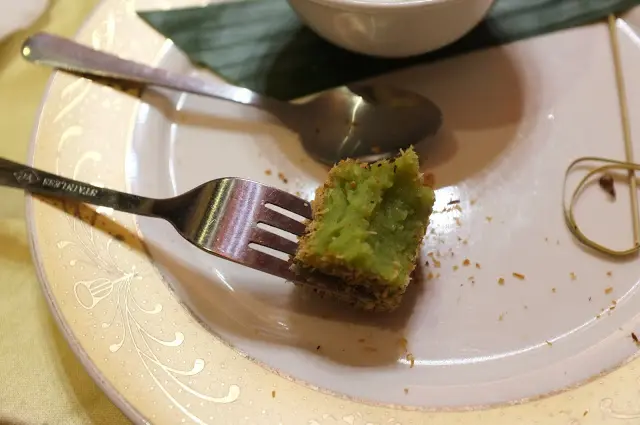 香蘭葉糕 這絕對是必點,我超不愛吃這種糕類,但這個我可以,口感紮實又帶點軟Q,咬下後那清新的香蘭葉香噗鼻,搭配外層的烤椰絲完全展現泰式甜點之精華。