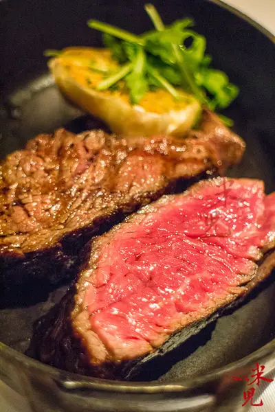 雖然上牛排館時,我很少點「豬肉」的主菜,不過當我看到「爐烤純種盤克夏黑豬梅花與在地活菌豬肋眼排」這種一次雙享受的主菜時就忍不住了,而且米兒對之前吃過的盤克夏黑豬的肉質十分喜愛,所以當然選擇了這個當主菜,好在這次一起用餐的還有胡姊和IRIS,所以仍然能夠點用我最愛的老饕牛排,再加上主廚推薦的鴨胸,這一餐就很精彩,所以說,即使是吃西餐,人多一點都可以試到多一些不同的菜色呀!