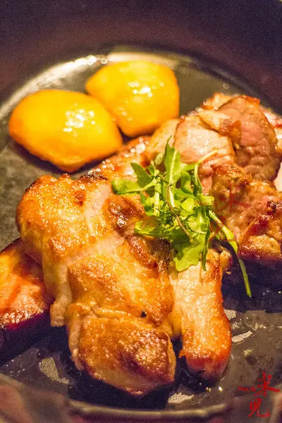 主廚特別推薦的鴨胸鴨肝卷,是把鴨肝卷在鴨胸裡頭,煎香表面再烤成的,吃起來很軟很多汁,比一般鴨胸多了更多層次油潤的香氣變化,底下的薯泥也是一絕。
